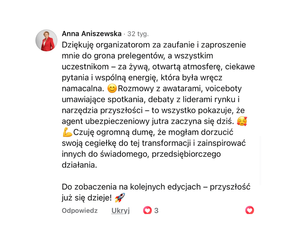 Dla agentów ubezpieczeniowych, którzy chcą sprzedawać nowocześnie, docierać do klientów online i przestać polegać wyłącznie na poleceniach. Jeśli chcesz rozwijać biznes, a nie tylko „utrzymywać portfel” — to wydarzenie jest dla Ciebie.